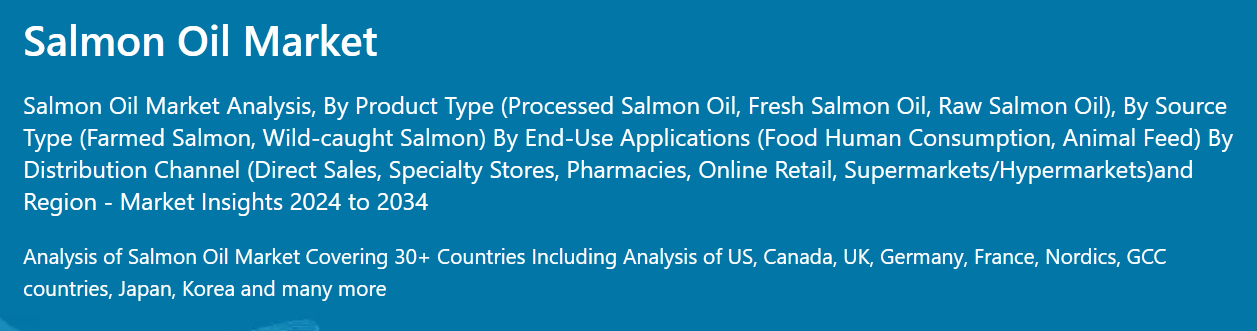 Fact.MR은 최근 발표된 보고서에서 지역별 주요 연어 기름 제조업체의 가격대, 판매 성장, 생산 능력, 투기적 기술 확장에 대한 자세한 정보를 제공했습니다.