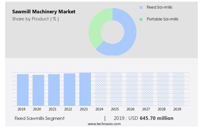고정식 목재 가공 기계 세그먼트는 예측 기간 동안 상당한 성장을 기록할 것으로 예상됩니다. 고정식 목재 가공 기계는 산업용 목재 가공 기계 또는 헤드 리그로도 알려져 있으며, 원목을 절단하기 위한 고정된 프레임을 특징으로 합니다. 이동식 목재 가공 기계와 달리, 원목은 가공을 위해 이 기계로 운반되어야 합니다. 고정된 특성으로 인해 이 기계는 크기가 더 크고 밀폐된 구조를 갖추고 있어 불리한 기상 조건에서도 연속 운영이 가능합니다. 고정식 목재 가공 공장에는 더 무거운 블레이드가 장착되어 직선적이고 빠른 절단이 가능합니다. 이는 생산 속도를 높여 전일제 목재 가공 활동에 적합합니다. 재절단기(resaws)와 가장자리 절단기(edgers)는 고정식 목재 가공 공장의 필수 구성 요소입니다. 이러한 공장에는 센서, 스캐너, 공정 제어 시스템 등 고급 기계 장비가 탑재되어 자동화 및 효율성을 높입니다.