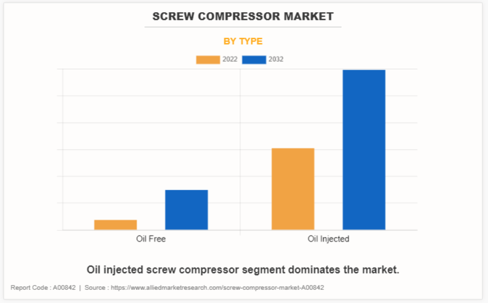 세계의 스크류 컴프레서 시장 : 유형별 (오일 프리, 오일 주입식), 시장 동향 2023년-2032년