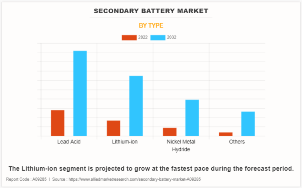 세계의 이차 전지 시장 : 유형별 (납축 전지, 리튬 이온, 기타), 해외/국내시장 2023년-2032년