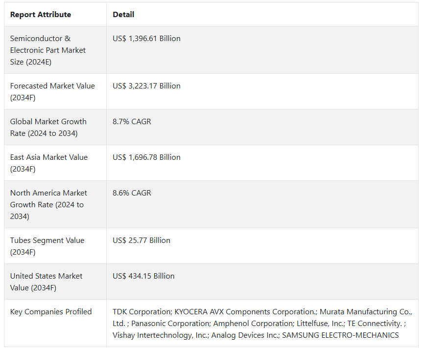 Fact.MR은 이 새로운 시장 보고서에서 전 세계에 위치한 반도체 및 전자 부품 시장의 주요 공급 업체의 가격대, 판매 성장, 생산 능력 및 투기적 기술 확장에 대한 자세한 정보를 제공합니다.