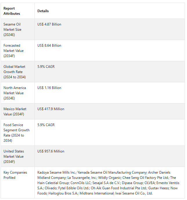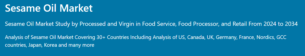 세계 참기름 수요는 2034년까지 86억 4천만 달러에 이를 것으로 예상됩니다.