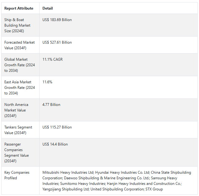 Fact.MR은 이 새로운 시장 보고서에서 전 세계 선박 & 보트 건조 시장의 주요 업체들의 가격대, 매출 성장, 생산 능력, 투기적 기술 확장에 대한 자세한 정보를 제공합니다.