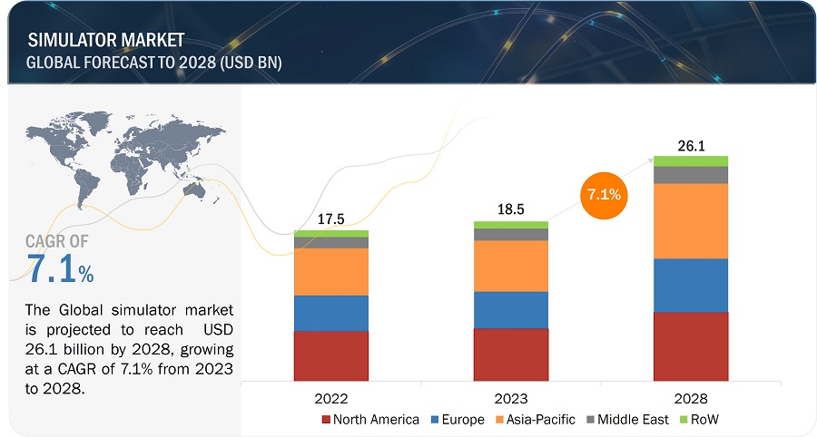 [276페이지 보고서] 시뮬레이터 시장 규모는 2023년 185억 달러로 추정되며, 2023년부터 2028년까지 7.1%의 연평균 성장률로 2028년에는 261억 달러에 달할 것으로 전망됩니다. 이 시장은 파일럿 및 운전자 교육 프로그램의 급증으로 인한 현실적인 교육 솔루션에 대한 수요와 같은 요인에 의해 주도되고 있습니다. 증강 현실 및 고충실도 시뮬레이션과 같은 기술 발전은 교육 모듈의 효율성을 향상시키는 데 핵심적인 역할을 합니다. 또한 엄격한 안전 규정과 비용 효율적이고 몰입도 높은 교육 경험에 대한 요구는 시뮬레이터 산업의 성장을 더욱 촉진하고 있습니다.