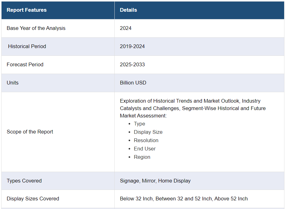 세계의 스마트 디스플레이 시장 (2025-2033) : 유형별 (사이니지, 미러, 홈 디스플레이), 디스플레이 크기별 (32 인치 미만, 32~52 인치, 52 인치 이상)