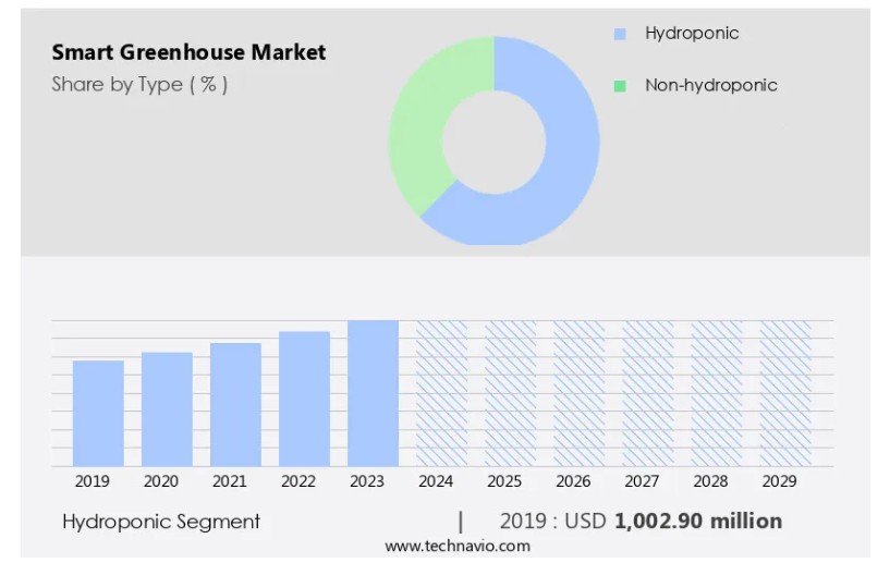특히 수경 재배 부문에서 시장이 크게 성장하고 있습니다. 수경 재배는 토양을 사용하지 않고, 통제된 환경에서 영양 용액을 사용하여 식물을 재배하는 현대적인 농업 기술입니다. 이 방법은 효율성과 다양한 불리한 농업 조건에 대한 적응성으로 인해 소규모 농민, 초보 농민, 상업 재배자들 사이에서 인기를 얻고 있습니다. 수경 재배 솔루션을 위한 스마트 온실 시스템은 기후 변화, 인구 증가, 경작지 부족으로 인한 식량 부족 문제를 해결하기 위한 혁신적인 대응책입니다. LED 재배등, HVAC 시스템, 제어 시스템, 센서, 통신 시스템과 같은 첨단 기술이 이 온실에 통합되어 농업 조건을 최적화하고 생산성을 높입니다.
