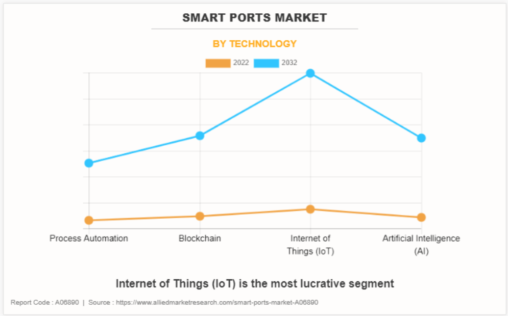 세계의 스마트 항만 시장 : 기술별 (프로세스 자동화, 블록체인, 사물인터넷(IoT)), 시장 동향 2023년-2032년