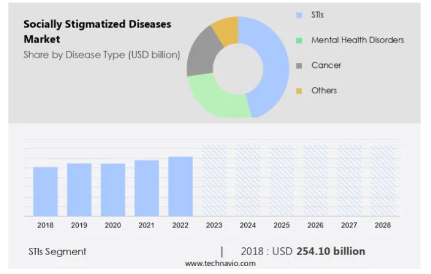 글로벌 사회적 낙인 질병 시장: 질병 유형 (성병, 정신 건강 장애, 암, 기타), 한국, 아시아, 미국, 2024-2028, 시장 규모