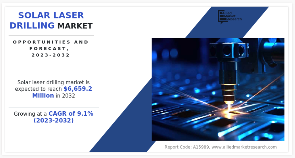 2022년 전 세계 태양광 레이저 드릴링 시장의 가치는 28억 1,060만 달러였으며, 2032년에는 66억 5,920만 달러에 이를 것으로 예상되며, 2023년부터 2032년까지 연평균 성장률(CAGR) 9.1%로 성장할 것으로 전망됩니다. 태양광 레이저 드릴링은 태양 에너지를 사용하여 고강도 레이저 광선을 생성한 다음, 이 광선을 특정 위치에 집중시켜 재료를 제거, 증발 또는 관통합니다. 이 기술은 태양광 집광기와 레이저 시스템이라는 두 가지 필수 구성 요소로 이루어져 있습니다. 태양광 집광기는 태양광을 수집하여 특정 대상 영역에 집중시키는 데, 이때 파라볼라 거울이나 렌즈를 사용하는 경우가 많습니다. 이렇게 집중된 태양 에너지는 레이저 시스템으로 전달되어 증폭된 다음, 드릴링할 물질에 집중됩니다.