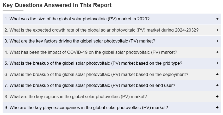 도전과 기회: 태양광 발전(PV)의 글로벌 시장에서 가장 큰 도전 과제는 향상된 에너지 저장 솔루션에 대한 요구 증가와 전통적인 에너지 원과의 경쟁입니다. 그러나 에너지 저장에 대한 지속적인 혁신과 태양광 발전 시스템의 비용 효율성과 효율성을 향상시키기 위한 새로운 기술과 재료의 광범위한 채택과 같은 중요한 기회는 예측 기간 동안 글로벌 시장을 계속해서 촉진할 것입니다.