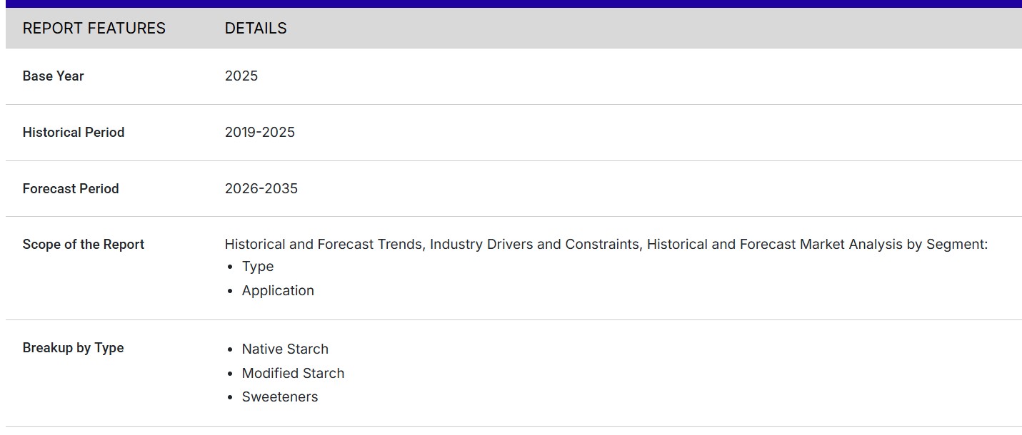 “한국 옥수수 전분 시장 보고서 및 2026-2035년 전망”은 다음 세분화를 기반으로 시장에 대한 상세한 분석을 제공합니다: