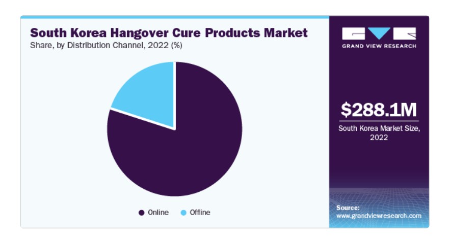 온라인 판매 채널은 연평균 복합 성장률(CAGR) 19.8%로 가장 빠르게 성장하는 채널이다. 최근 몇 년간 한국인들의 숙취 해소제 등 다양한 제품 구매 방식에 변화가 생겼다. 특히 코로나19 팬데믹 이후 사회적 거리두기를 유지하면서도 접근성이 용이하고 시간 절약이 가능하며 추가 할인 혜택이 제공된다는 점 등에 힘입어 온라인으로 이러한 제품을 구매하는 소비자가 증가하고 있다. 이는 결과적으로 온라인 채널을 통한 숙취 해소제 판매를 강화시켰다.