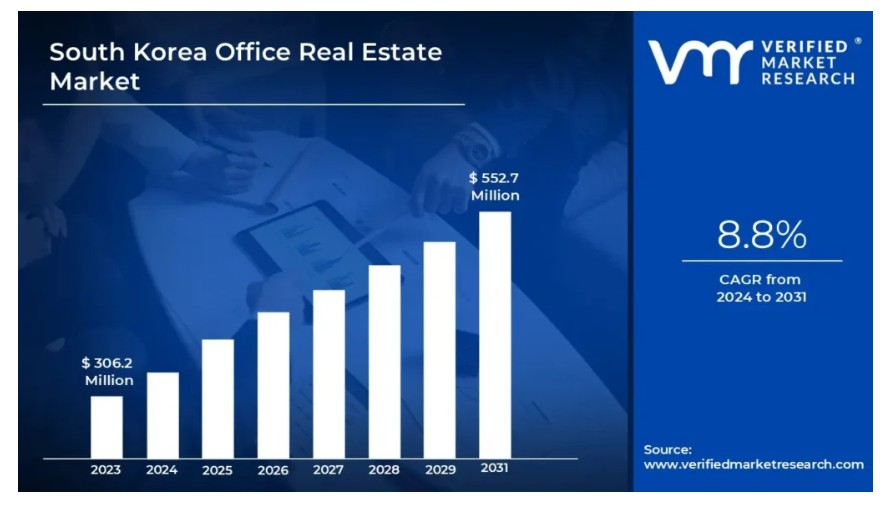 Verified Market Research에 따르면, 경기도는 한국 사무실 부동산 시장에서 가장 빠르게 성장하는 지역입니다.