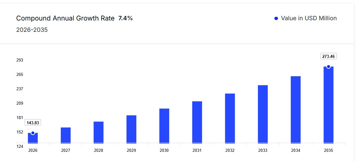 2026-2035년 예측 기간 동안 시장은 건전한 성장을 보이며 2035년에는 약 2억 7,346만 달러에 이를 것으로 평가됩니다.