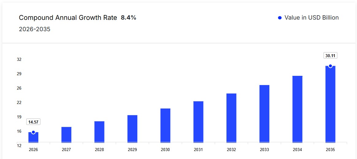 2026-2035년 예측 기간 동안 시장은 건실한 성장을 보이며 2035년까지 301억 1천만 달러에 도달할 것으로 추정됩니다.