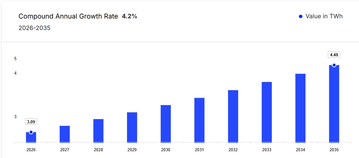 2026-2035년 예측 기간 동안 시장은 건전한 성장을 보이며 2035년까지 약 4.48 TWh에 도달할 것으로 예상됩니다.
