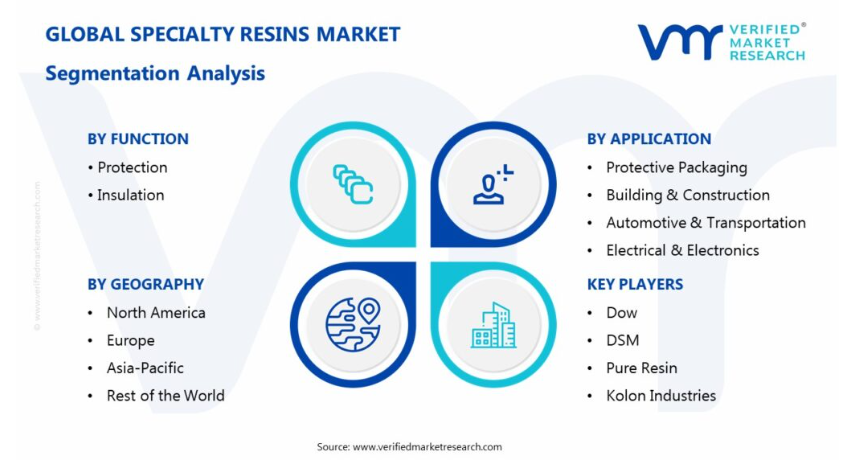 글로벌 특수 수지 시장은 기능, 용도, 지리학적 위치에 따라 세분화됩니다.