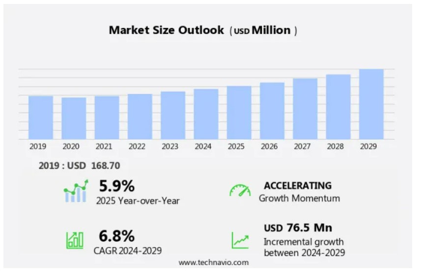 2025-2029년 사이에 시장 규모가 7,650만 달러 증가할 것으로 예상됩니다.
