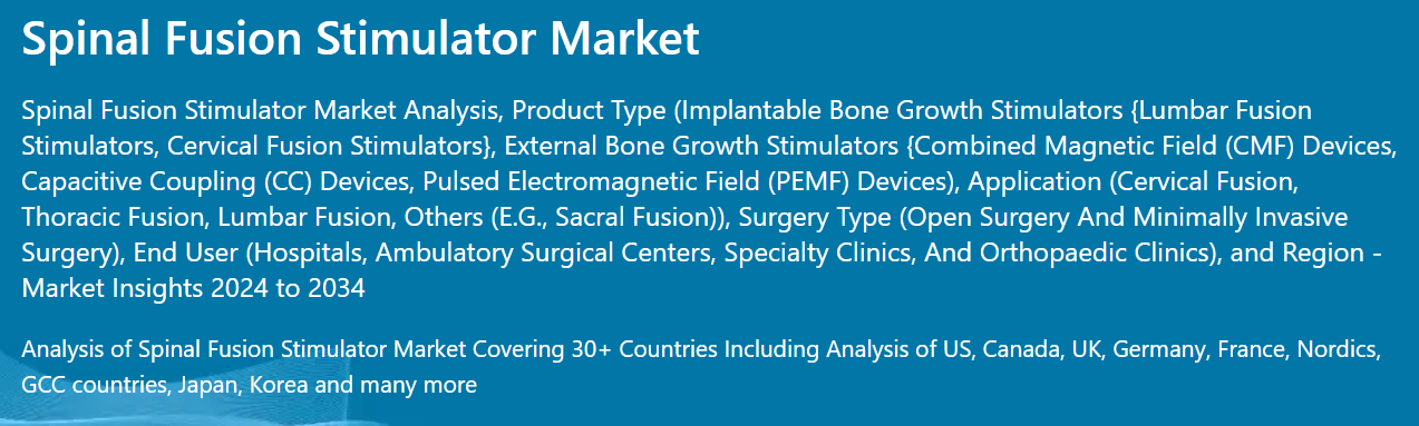 척추 융합 자극기 시장의 역사적 분석(2019~2023)과 미래(2024~2034) 경로 분석