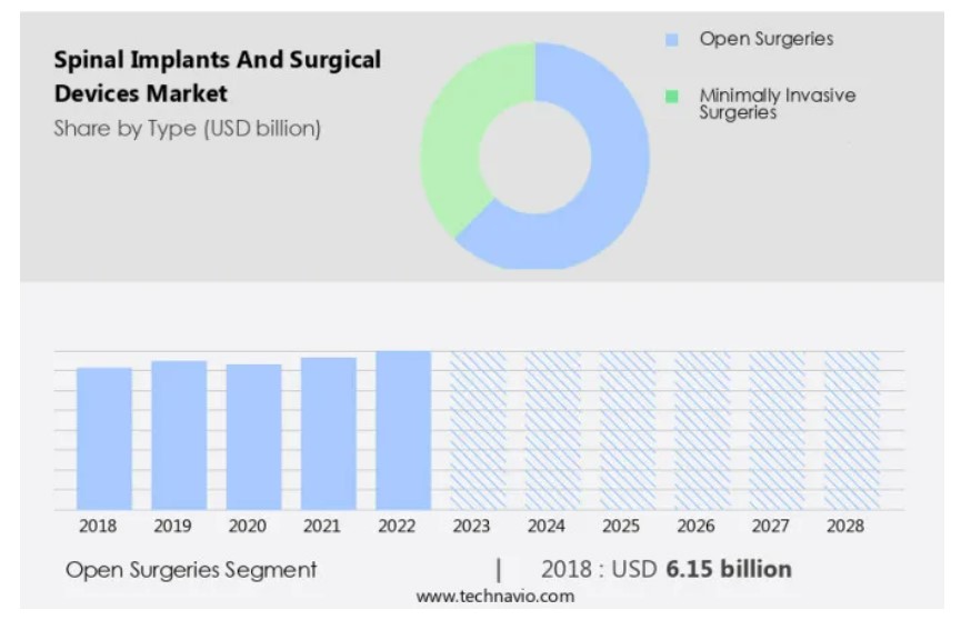 글로벌 척추 임플란트 및 수술 기기 시장 : 유형별 (개복 수술, 최소 침습 수술), 한국, 아시아, 미국, 2025-2029, 시장 규모