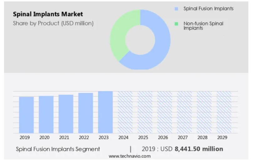 척추 융합 임플란트 부문의 가치는 2019년에 84억 4천만 달러였으며, 예측 기간 동안 점진적으로 증가했습니다.