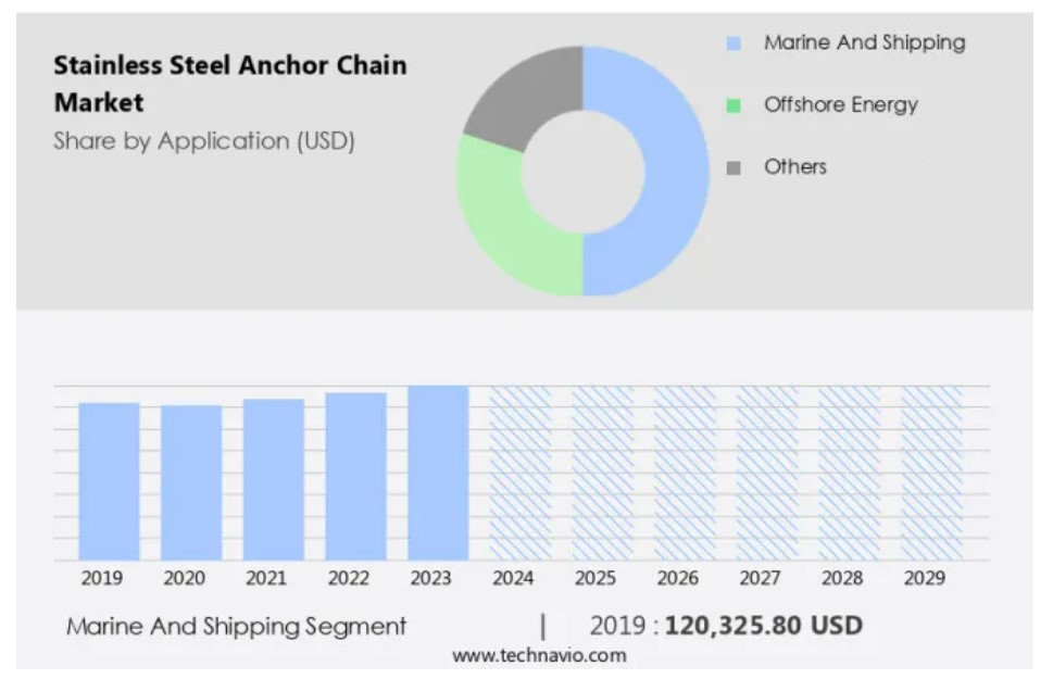 글로벌 스테인리스 스틸 앵커 체인 시장 : 용도별 (해양 및 운송, 해양 에너지, 기타), 한국, 아시아, 미국, 2025-2029, 시장 규모