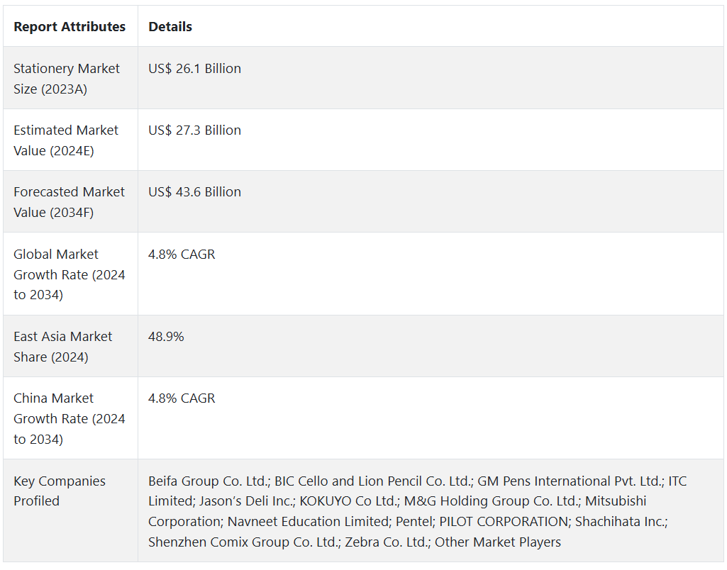 Fact.MR은 최근 발표된 보고서에서 지역별 주요 문구류 제조업체의 가격대, 매출 성장, 생산 능력, 투기적 기술 확장에 대한 자세한 정보를 제공했습니다.
