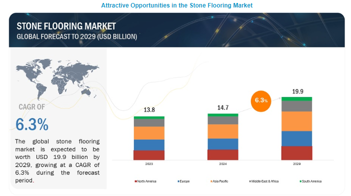 석재 바닥재 시장은 2024년 147억 달러로 평가되며 2024년부터 2029년까지 연평균 6.3% 성장하여 2029년에는 192억 달러에 달할 것으로 예상됩니다.