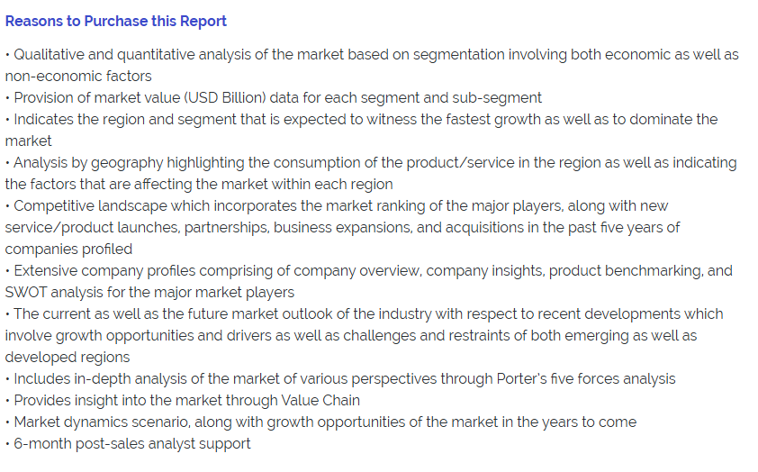 시장 분석에는 이러한 주요 업체에 대한 섹션도 포함되어 있으며, 여기에서 분석가들은 모든 주요 업체의 재무제표에 대한 통찰력과 제품 벤치마킹 및 SWOT 분석을 제공합니다.