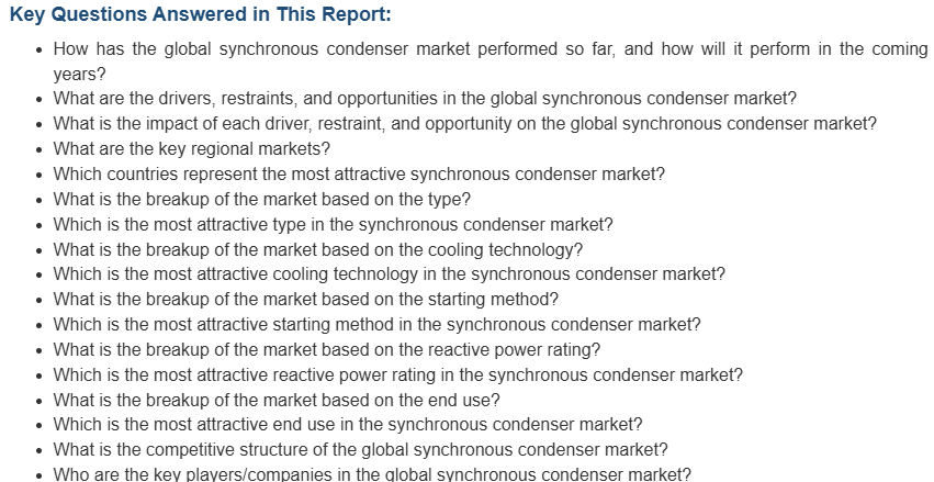 최고의 기업들은 혁신적인 전략과 투자를 통해 시장의 성장을 촉진하는 데 중추적인 역할을 하고 있습니다. 그들은 전력 부문의 변화하는 요구를 해결하는 첨단 동기식 콘덴서 솔루션을 개발하기 위해 기술 전문 지식을 활용하고 있습니다. 또한, 최고의 기업들은 시장 입지를 확대하기 위해 전략적 협력과 파트너십에 집중하고 있습니다. 유틸리티 및 그리드 운영자와의 협력 노력을 통해 이러한 기업들은 중요한 위치에 콘덴서를 배치하여 전체 그리드 성능에 미치는 영향을 최적화할 수 있습니다. 연구개발에 대한 투자는 기업이 콘덴서 기술의 효율성과 신뢰성을 향상시키려고 노력하는 가운데 시장 성장에 중요한 역할을 합니다. 최고의 기업들이 계속해서 이러한 장치의 그리드 안정성 유지 효과를 입증함에 따라, 이러한 콘덴서의 채택이 더욱 가속화될 것으로 예상됩니다.
