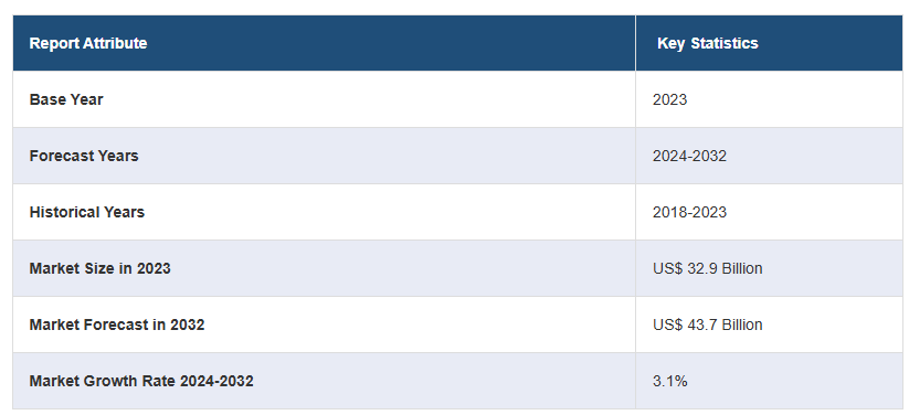전 세계 합성 라텍스 폴리머 시장은 2023년 329억 달러 규모로, 2024년부터 2032년까지 연평균 3.1% 성장하여 2032년에는 437억 달러에 이를 것으로 예상됩니다. 시장 성장의 주요 요인은 페인트 및 코팅, 섬유, 건설 및 접착제 분야에서의 수요 증가, 인프라 개발, 향상된 성능 특성, 친환경 제형에 대한 관심 상승, 중합 기술의 발전 등이 있습니다.