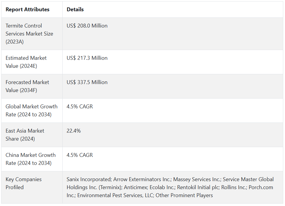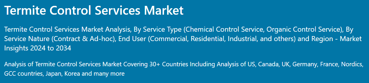 흰개미 방제 서비스 시장의 역사적 분석(2019~2023)과 미래(2024~2034) 경로 분석
