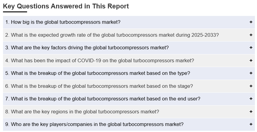 | 글로벌 터보 압축기 시장은 2024년에 210억 달러에 이를 것으로 예상되며, 2033년까지 337억 달러에 도달할 것으로 전망되고 있습니다. 이 시장은 2025년부터 2033년까지 연평균 성장률(CAGR) 5.14%를 기록할 것으로 보입니다. 터보 압축기는 주로 압축 가능한 가스를 농축하는 데 사용되며, 천연가스 처리 및 석유화학 생산 과정에서도 필수적인 역할을 합니다. 시장 동향에 따르면, 에너지 수요 증가와 해양 석유 생산 현장에서의 터보 압축기 사용 확대가 주요 요인으로 작용하고 있습니다. 또한, 기존의 터보 압축기를 최신 기술로 업그레이드하려는 노력이 진행되고 있으며, 이는 전체적인 성능 향상과 운영 비용 절감을 목표로 하고 있습니다. 제조업체들은 에너지 효율성 향상과 전력 소비 최적화를 위해 공기역학적 개선에도 집중하고 있습니다. 소득 수준 향상과 차량 판매 증가에 따라, 자동차 산업에서 오일 프리 압축기 사용도 증가할 것으로 보입니다. 보고서에서는 시장을 여러 기준으로 세분화하여 분석하고 있습니다. 유형별로는 원심 압축기와 축 압축기로 나뉘며, 단계별로는 단일 단계와 다단계로 구분됩니다. 최종 사용자에 따라 석유 및 가스, 발전, 화학, 상하수 처리 등으로 세분화되어 있습니다. 지역적으로는 북미, 아시아 태평양, 유럽, 중남미, 중동 및 아프리카로 나누어 각각의 시장 동향과 전망을 다루고 있습니다. 경쟁 구도에서는 Atlas Copco AB, BorgWarner Inc., Cummins Inc., Siemens AG 등 다양한 주요 업체들이 포함되어 있습니다. 이들 기업은 시장에서의 경쟁력을 유지하기 위해 혁신적인 기술과 효율적인 제품을 지속적으로 개발하고 있습니다. |