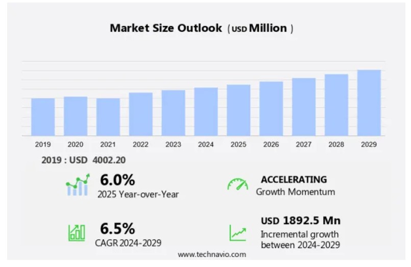 2025-2029년 시장의 전년 대비 성장률은 얼마입니까?