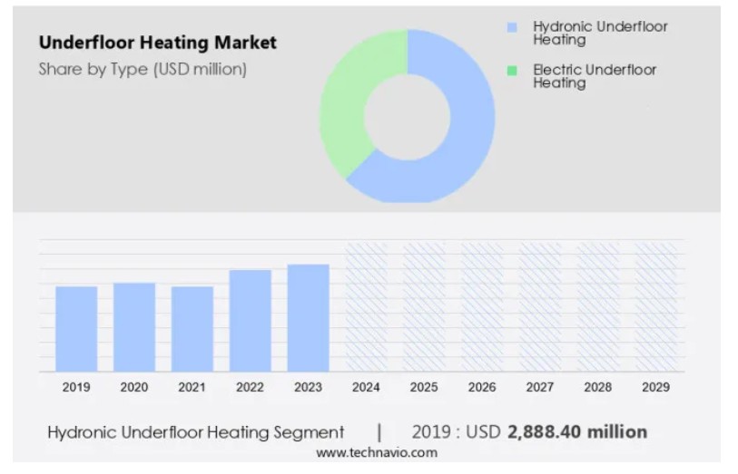또한 온도 조절기, 지오펜싱, 센서와 같은 스마트 홈 기술의 통합으로 바닥 난방 시스템이 더욱 유연하고 사용자 친화적으로 변했습니다. 공기 질은 바닥 난방 시장의 성장을 이끄는 또 다른 요인입니다. 먼지와 알레르겐을 순환시킬 수 있는 전통적인 라디에이터와는 달리, 바닥 난방 시스템은 열을 분산시키기 위해 대류나 복사에 의존하지 않습니다. 따라서 실내 공기 질을 개선하고자 하는 사람들, 특히 민감한 거주자가 있는 가정에서 매력적인 옵션이 될 수 있습니다. 리노베이션 시장 또한 바닥 난방에 중요한 기회를 제공합니다. 기존 주택에 바닥 난방 시스템을 설치하는 것은 에너지 효율을 높이고 난방 비용을 줄이는 효과적인 방법이 될 수 있습니다. 또한, 바닥 난방 시스템의 유연성은 다양한 바닥 유형과 쉽게 통합할 수 있어 주택 리모델링 프로젝트에 널리 사용되고 있습니다. 지속 가능한 건축 관행은 바닥 난방 시장에 영향을 미치는 또 다른 트렌드입니다. 바닥 난방 시스템은 Ashrae 90.1 표준에 부합하는 친환경 난방 솔루션을 제공하여 탄소 배출량 감소에 기여합니다.