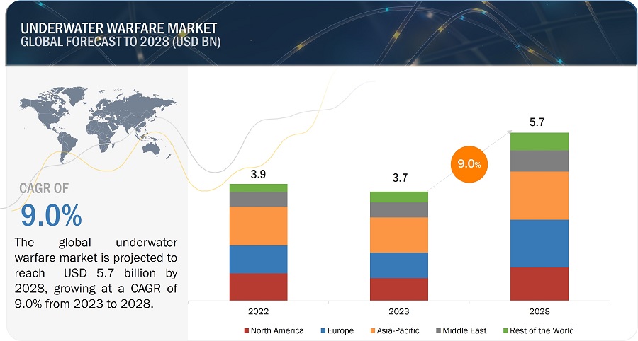 [214페이지 보고서] 수중전 시장 규모는 2023년 37억 달러에서 2028년 57억 달러로 9.0%의 연평균 성장률(CAGR)로 성장할 것으로 전망됩니다. 첨단 기술 기반의 수중전 시스템에 대한 필요성이 증가하고 있습니다. 첨단 기술을 기반으로 한 수중전 플랫폼 현대화에 대한 수요가 증가하고 있습니다. 전 세계 각국 정부는 미래의 수중 위협에 대응하기 위해 수중전 산업 솔루션 개발에 투자하여 해군을 현대화하고 있습니다.
