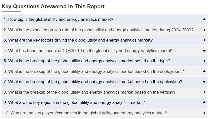 IMARC 그룹은 2024-2032년 글로벌, 지역, 국가 수준에서 유틸리티 및 에너지 분석 시장 전망과 함께 각 시장 부문의 주요 동향에 대한 분석을 제공합니다. 저희 보고서는 유형, 배치, 응용 프로그램, 수직적 측면을 기준으로 시장을 분류했습니다.