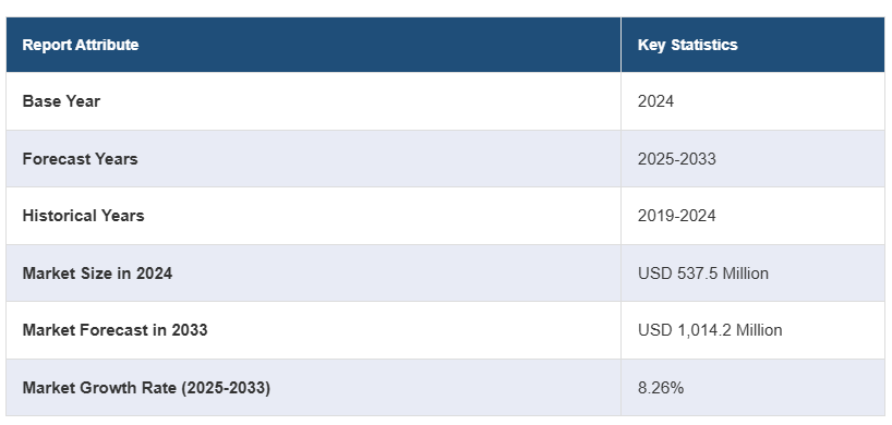 글로벌 UV 테이프 시장 규모는 2024년 5억 3750만 달러에 달했습니다. 앞으로 IMARC 그룹은 2025~2033년 동안 8.26%의 성장률(CAGR)을 보이며 2033년까지 시장이 1,014.2백만 달러에 이를 것으로 예상하고 있습니다.
