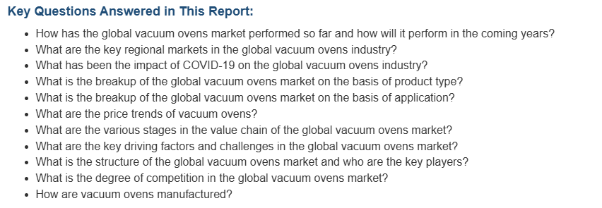 이 보고서는 모든 필수적인 측면을 다루는 글로벌 진공 오븐 시장에 대한 심층적인 통찰력을 제공합니다. 여기에는 시장의 거시적 개요부터 산업 성과, 최근 동향, 주요 시장 동인 및 과제, SWOT 분석, 포터의 다섯 가지 힘 분석, 가치 사슬 분석 등의 미시적 세부 사항까지 포함됩니다. 이 보고서는 기업가, 투자자, 연구원, 컨설턴트, 비즈니스 전략가, 그리고 진공 오븐 산업에 어떤 식으로든 관여하고 있거나 진출을 계획하고 있는 모든 사람들에게 꼭 필요한 자료입니다.