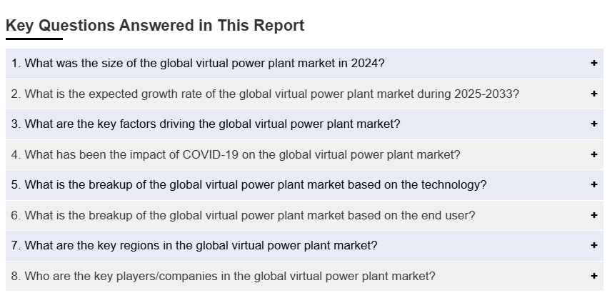 IMARC 그룹은 2025-2033년 글로벌, 지역, 국가 수준에서 가상 발전소 시장 전망과 함께 각 시장 세그먼트의 주요 트렌드에 대한 분석을 제공합니다. 저희의 보고서는 기술, 원천, 최종 사용자를 기준으로 시장을 분류했습니다.