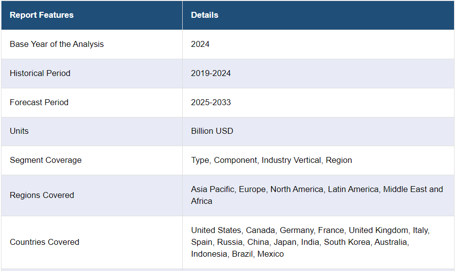 전 세계 비전 가이드 로봇 시장 규모는 2024년에 89억 달러에 달했습니다. 앞으로 IMARC 그룹은 2025~2033년 동안 11.28%의 성장률 (CAGR )을 보이며 2033년까지 시장 규모가 245억 달러에 달할 것으로 예상하고 있습니다.