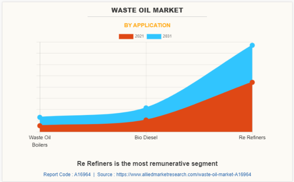 유형별로 보면, 윤활유 부문이 2021년 글로벌 폐유 시장 점유율을 지배했으며, 예측 기간 동안 가장 빠르게 성장하는 부문으로 남을 것으로 예상됩니다. 이는 성장하는 자동차 부문에서 합성 윤활유에 대한 수요가 증가했기 때문입니다.