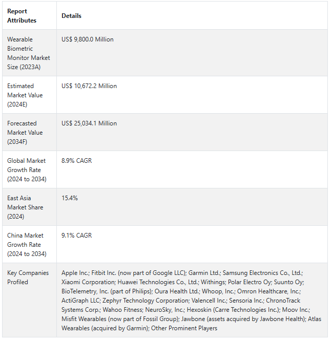 웨어러블 생체 인식 모니터 시장 전망 (2024~2034년)