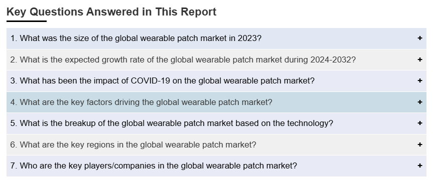 IMARC Group은 2024-2032년 글로벌, 지역 및 국가 수준의 예측과 함께 글로벌 웨어러블 패치 시장 보고서의 각 부문의 주요 동향에 대한 분석을 제공합니다. 이 보고서는 기술 및 최종 용도에 따라 시장을 분류했습니다.