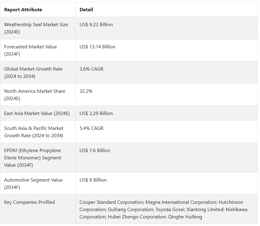 웨더스트립 실 시장 전망 (2024년에서 2034년)
