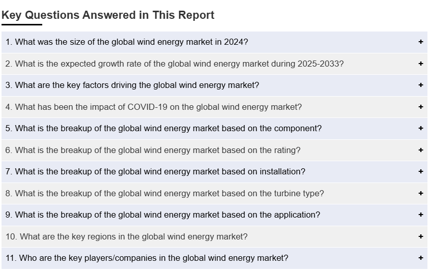 IMARC 그룹은 2025-2033년 글로벌, 지역, 국가 수준의 예측과 함께 각 시장 부문의 주요 동향에 대한 분석을 제공합니다. 저희 보고서는 구성 요소, 등급, 설치, 터빈 유형, 그리고 응용 프로그램에 따라 시장을 분류했습니다.
