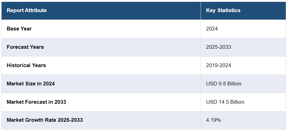 글로벌 와이퍼 시스템 시장 규모는 2024년에 98억 달러에 달했습니다. 앞으로 IMARC 그룹은 2025-2033년 동안 4.19%의 성장률 (CAGR) 을 보이며 2033년까지 시장 규모가 145억 달러에 달할 것으로 예상하고 있습니다. 기술 발전, 승용차 및 상용차 판매 증가, 도로 사고 사례 증가는 시장에 긍정적인 영향을 미치는 주요 요인 중 일부입니다.