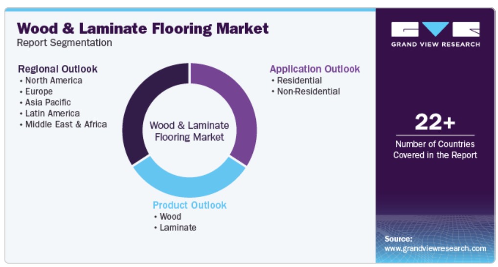 이 보고서는 글로벌, 지역, 국가 수준에서 물량과 수익의 증가를 예측하고, 2018년부터 2030년까지 각 하위 부문에서 최신 산업 동향에 대한 분석을 제공합니다. 이 연구를 위해 Grand View Research는 제품, 용도, 지역을 기준으로 글로벌 목재 및 라미네이트 바닥재 시장 보고서를 세분화했습니다.