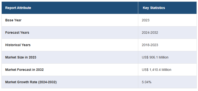 글로벌 무마찰 코팅 시장은 2023년 기준으로 약 906.1백만 달러 규모로, 2024년부터 2032년까지 연평균 성장률(CAGR) 5.04%를 기록하며 2032년에는 1,410.4백만 달러에 이를 것으로 전망되고 있습니다. 이 시장의 성장은 산업 자동화의 증가, 에너지 효율성에 대한 관심, 자동차 및 항공 우주 부문의 수요 증가, 의료 기기 분야의 확장 등 다양한 요인에 의해 추진되고 있습니다. 무마찰 코팅은 마찰을 줄이고 성능을 개선하기 위해 다양한 재료와 부품에 적용되는 특수 표면 처리로, 마찰로 인한 에너지 손실을 최소화하여 기계 시스템의 내구성과 효율성을 높이는 데 기여합니다.