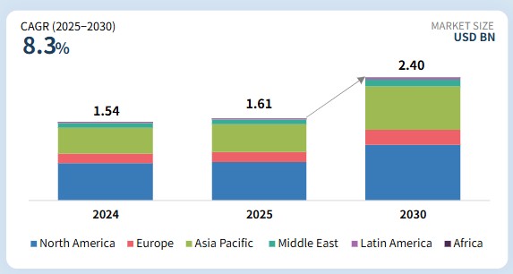 항공기 배터리 시장은 2025년 16억 1천만 달러에서 2030년까지 연평균 성장률(CAGR) 8.3%로 24억 달러 규모로 성장할 것으로 전망됩니다. 항공기 배터리 구매량은 2025년 150만 9,800대에서 2030년까지 233만 5,600대로 증가할 것으로 예상됩니다. 이러한 성장은 전기화, 기체 교체, 그리고 더 높은 에너지 밀도, 경량화, 안전성 향상을 요구하는 지속가능성 우선순위가 주도하고 있습니다.